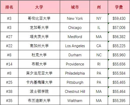 第一名哥伦比亚大学59430的学费折合成人民币大学需要41.3万人民币。四年下来,仅仅学费就是160万,可见私立大学的学费是真的很昂贵。而公立大学就要便宜很多,比如北卡罗来纳大学教堂山分校的学费是35,169美元,佐治亚理工学院学费是33,020美元,排名35的佛罗里达大学可以说是性价比很高了,学费只要28,658美元。