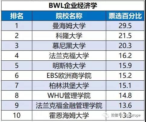 曼海姆大学连续两年蝉联企业经济学专业的第一名。