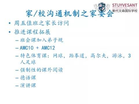 下面一点呢,也比较重要。一般来说,孩子通常是住校的。那么学校和家长之间的沟通就比较重要。斯代文森是有家委会的。那我曾经在家委会做了两年,一年是家长代表,后一年家委会主任。