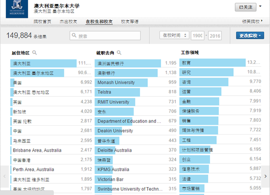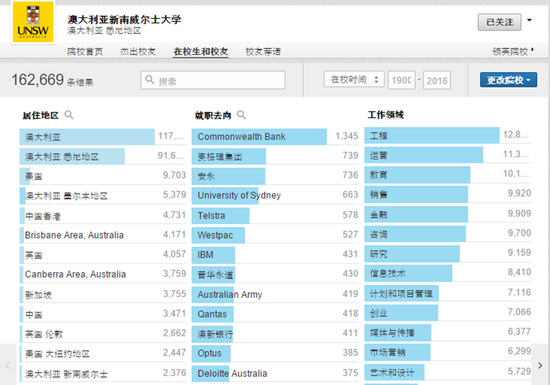 新南威尔士大学在中国(包括中国香港)的校友人数8202人(图片截至Linkedin)