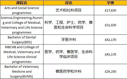 以下列出的是部分类别,并非全部,只作参考,详细学科费用请参考各校官网