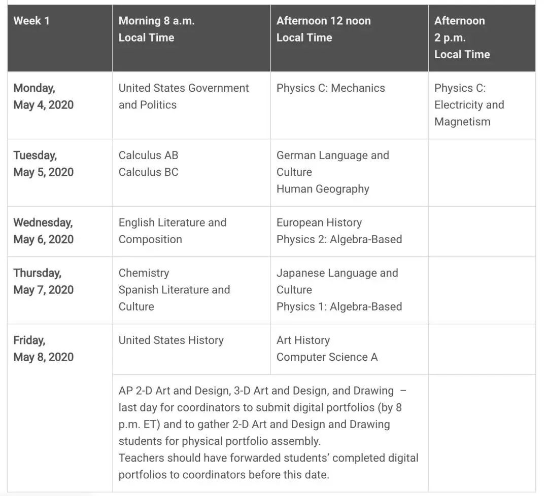 2020年AP延迟考试时间表