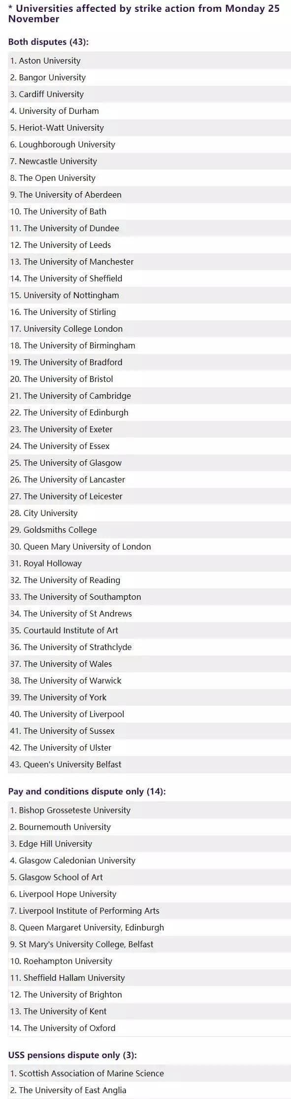 以下是会受罢工影响的60所学校名单,请同学注意安排自学时间。老师明确说,课,我不给你们上了,考试,一样要考!