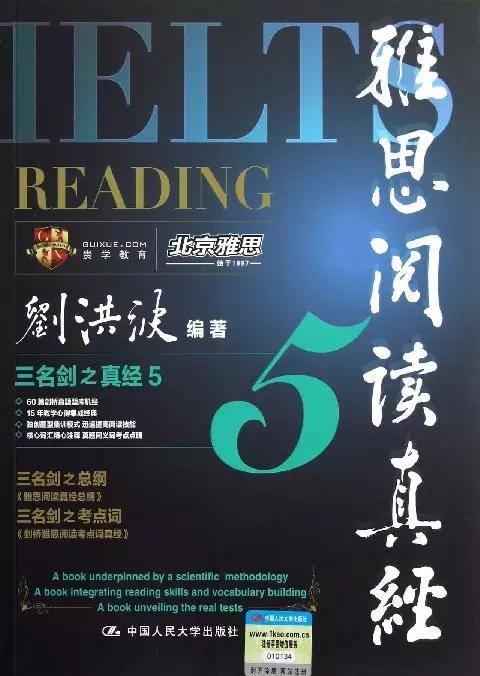 最后,《阅读真经5》是一本练习册,书中不配有其他讲解内容。但有配套的《剑桥雅思阅读考点词真经》介绍重要的考点词汇和《阅读真经总纲》介绍真经派的做题和复习方法,里面的200字总纲不一定要记,毕竟对于各个有经验的老师所给出的方法来说,很多总结出来的精华都十分精炼,不上课听讲融会贯通不一定能完全理解,这种情况死记硬背反而对大家没有什么好处,但作者的书中对他的方法做了很多的详解,还是有很大的可读性和借鉴性的。