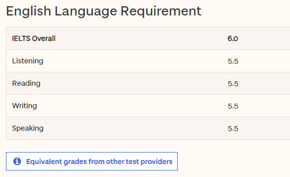 以上专业, 雅思要求都是总分6.0,单项不低于5.5。