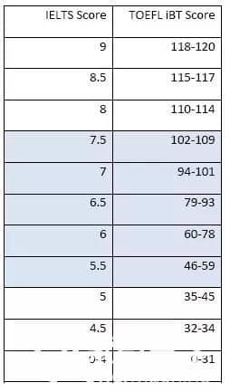 雅思托福分值对比,你的成绩相当于哪个水平?