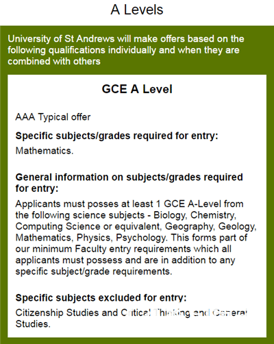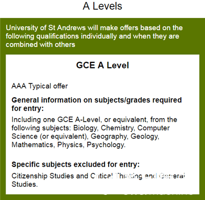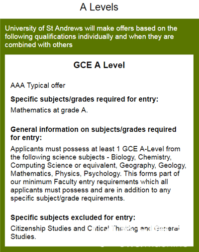 部分热门专业ALevel要求