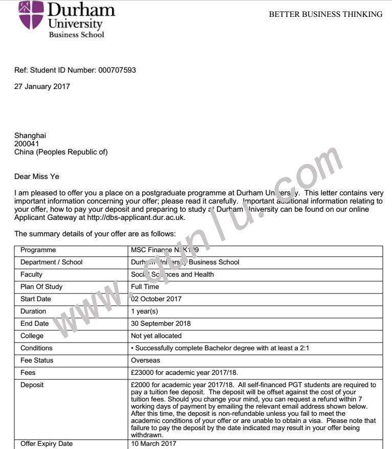 • 案例简介: 于杜伦大学,读金融专业,并获得四所学校的offer