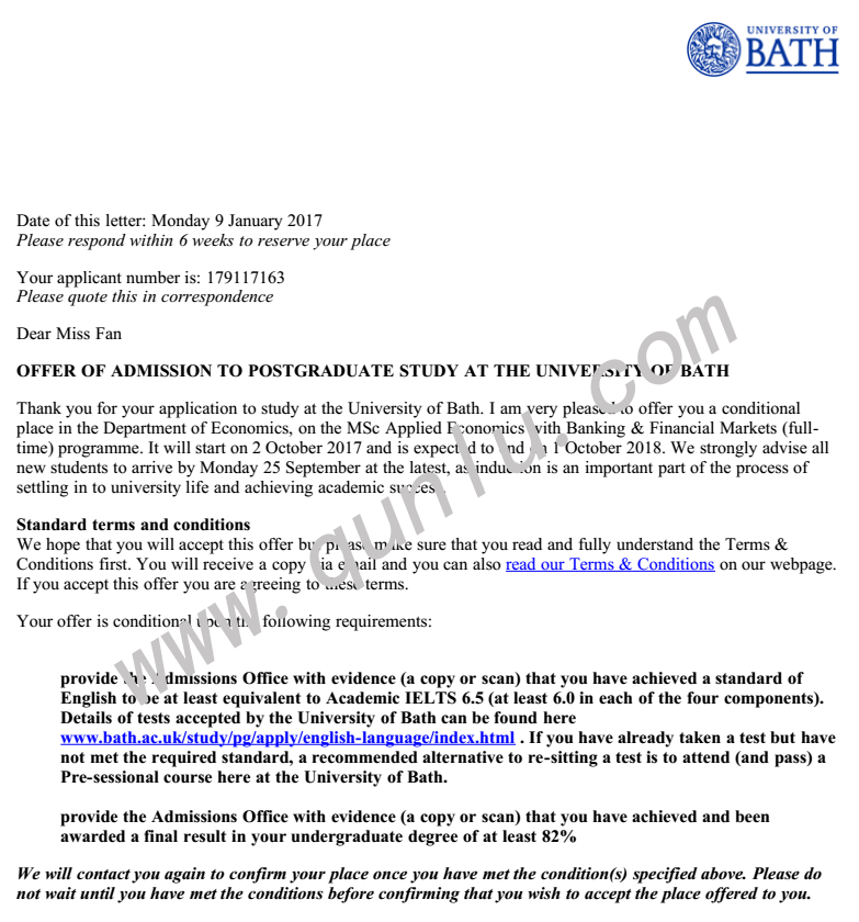 • 录取结果: University of Bath;University of Birmingham;University of Glasgow