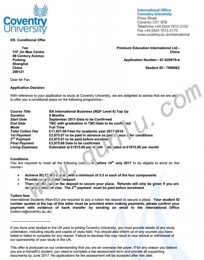 • 案例简介: 于北京理工大学高等职业技术学,读应用电子技术专业,并以均分80以上获得Coventry University的offer