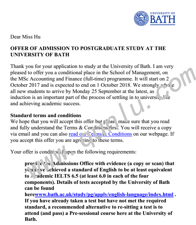 • 录取结果: University of Bath;KCL
