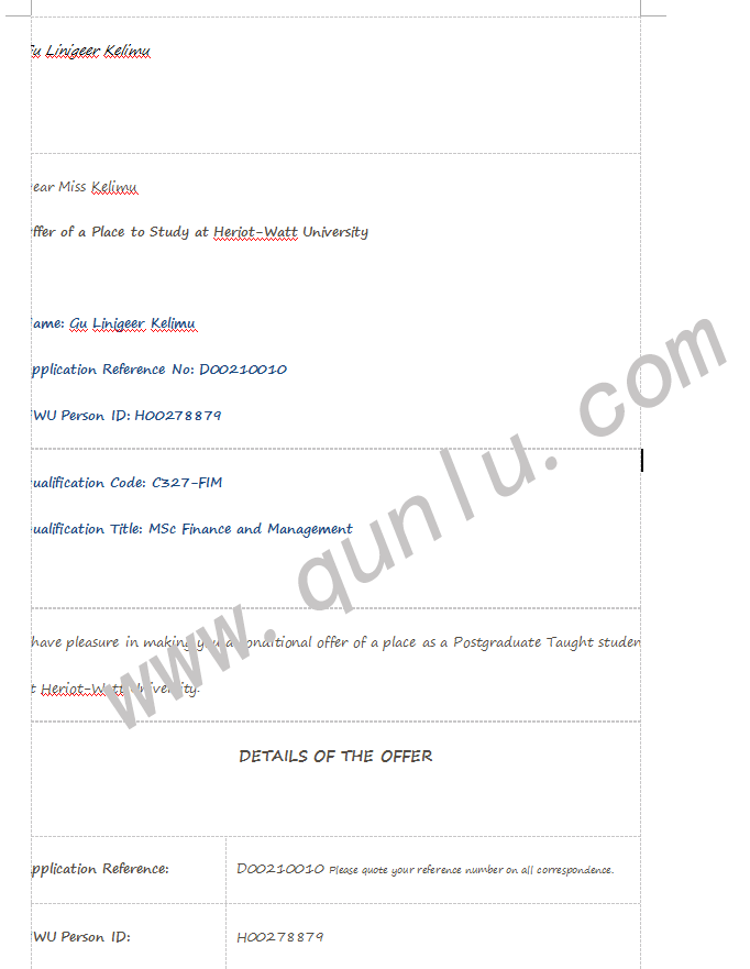 • 恭喜古同学获得Heriot-Watt University的offer