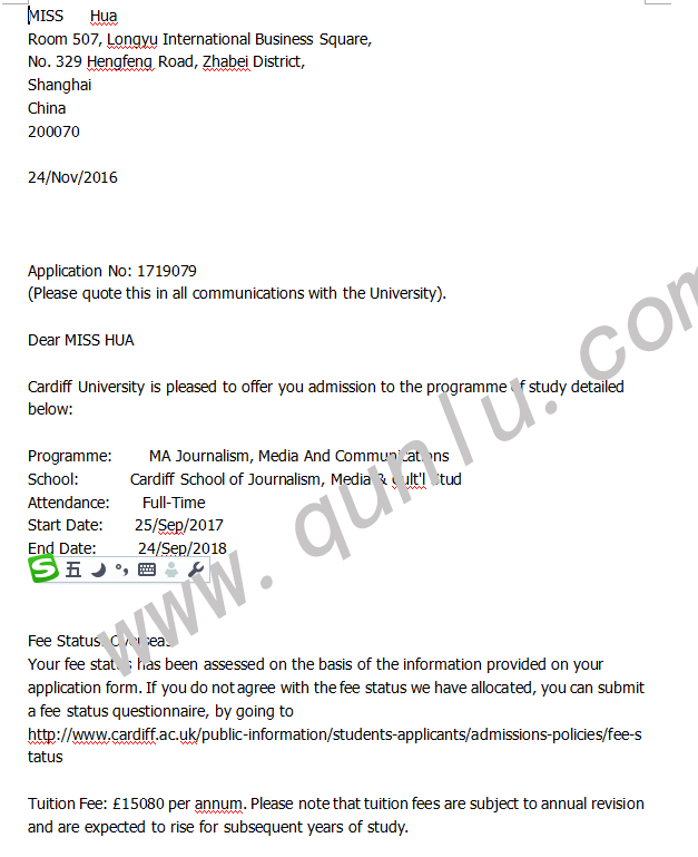 • 案例简介: 于南京森林警察学院,读治安学专业,并以均分76分的成绩获得Cardiff University的offic