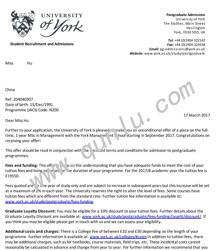 • 案例简介: 于UCL,读数学专业,并以GPA2.2分的成绩获得York University的offer