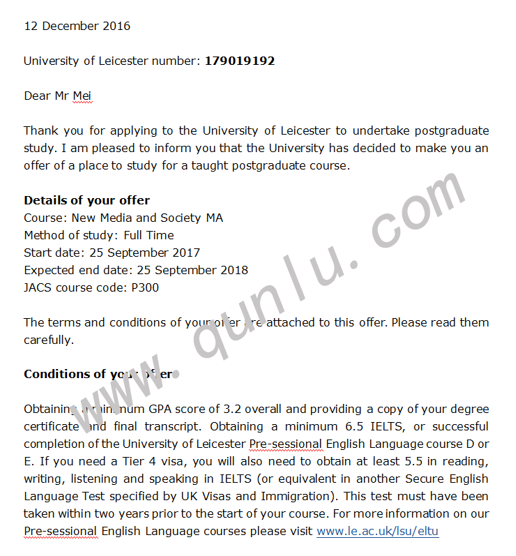 • 案例简介: 于上海体育学院,读新闻学专业,并以GPA3.32分的成绩获得University of Leicester的offer