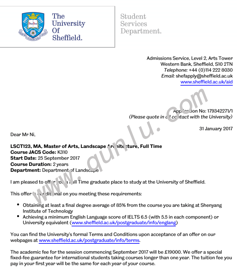 • 恭喜倪同学获得Cardiff University和 University of Sheffield的offer