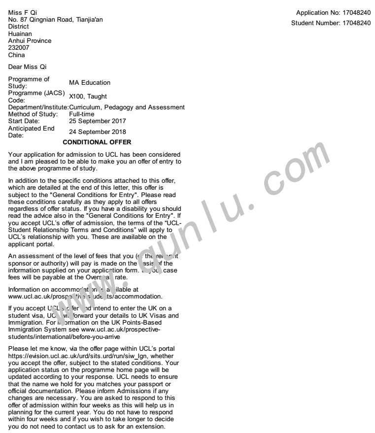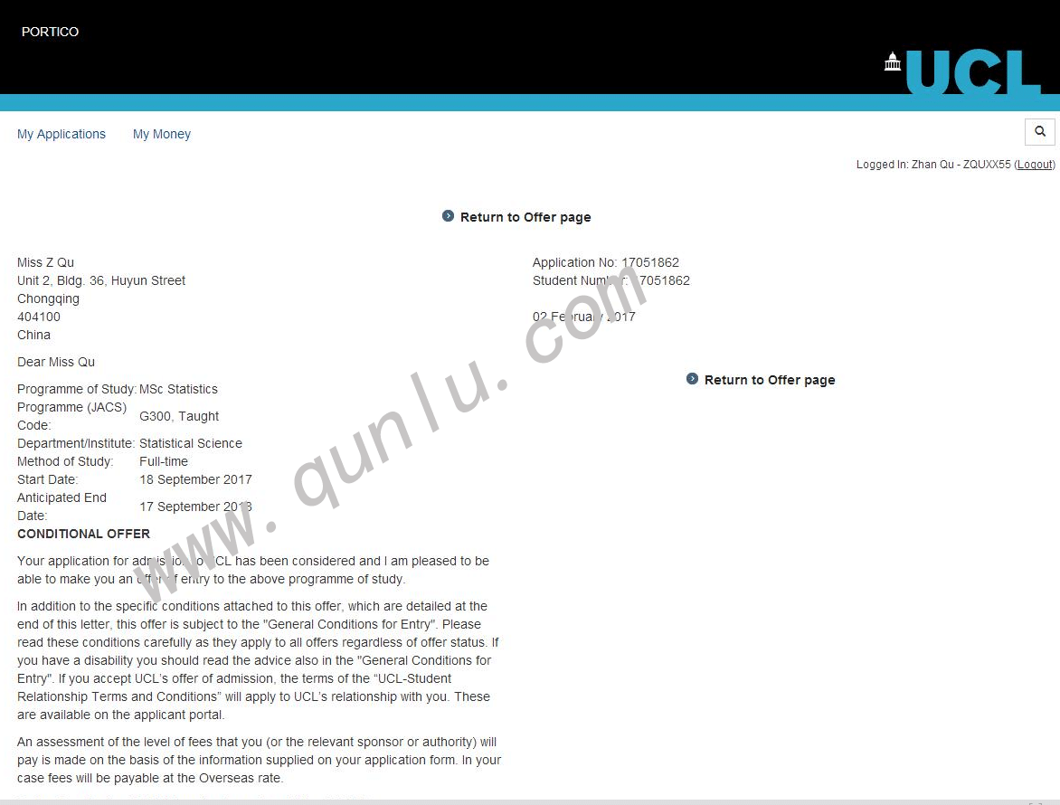 • 录取结果: UCL; University of Edinburgh; University of Leeds;University of York