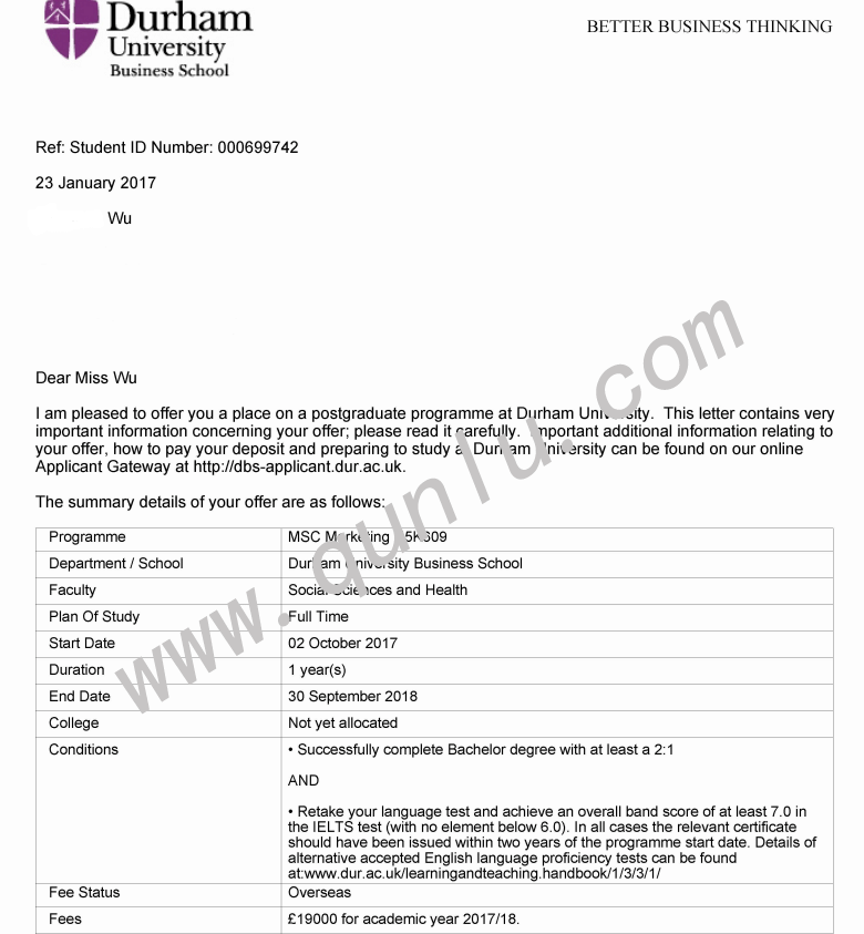 • 案例简介: 于杜伦大学,读Accounting and Finance专业,大一均分67分,大二均分67分获四所学校的offer
