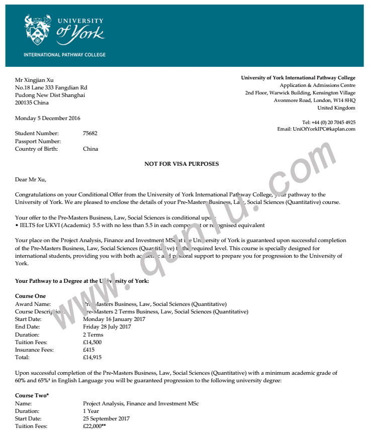 • 录取结果: University of York