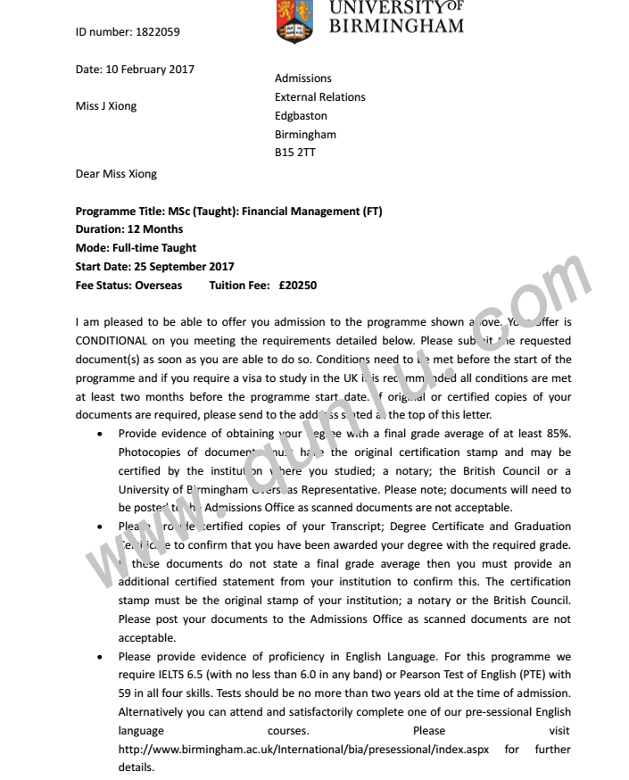 • 录取结果: University of Birmingham;Cardiff University;Newcastle University;University of Sussex