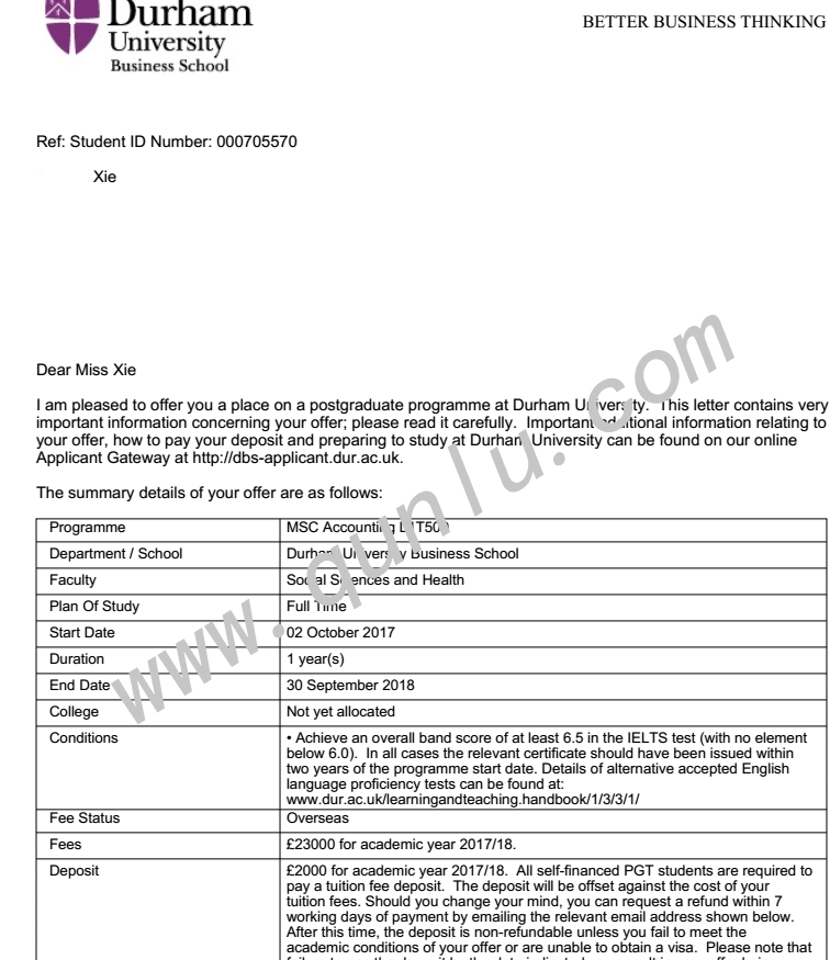 • 恭喜谢同学获得University of Durham的offer