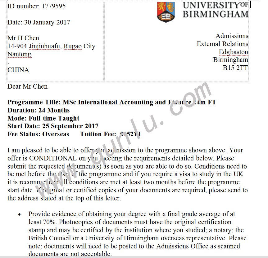 • 恭喜陈同学获得University of Birmingham、KCL和QMUL的offer