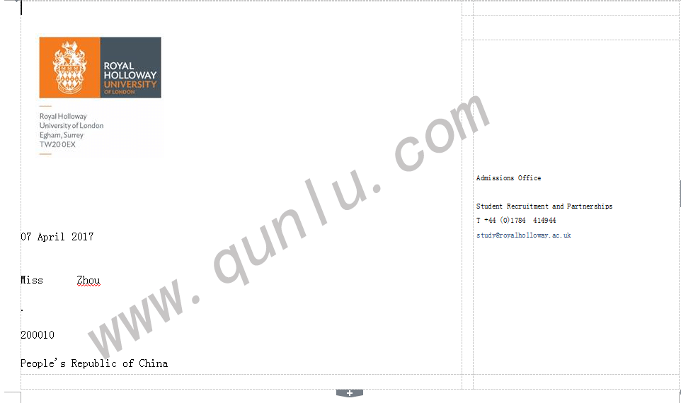 • 恭喜周同学获得QMUL、RH和University of Southampton的offer