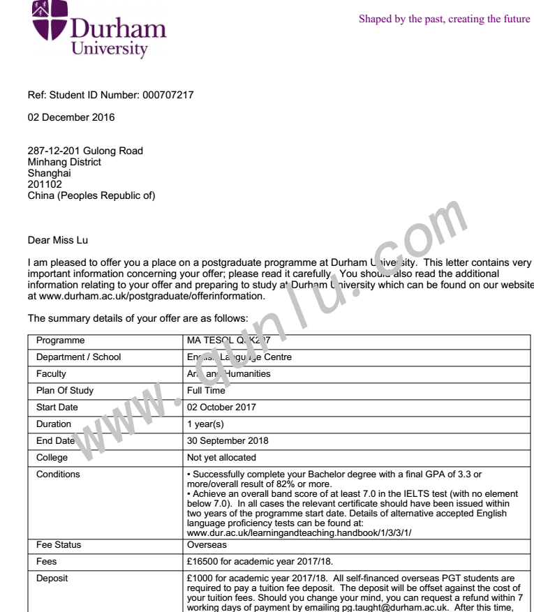 • 录取结果: University of Durham;University of Leeds;Newcastle University;University of York