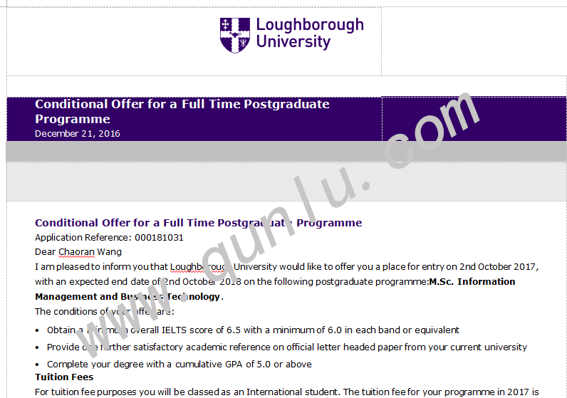 • 录取结果: University of Birmingham;Loughborough University;University of Manchester;University of Warwick