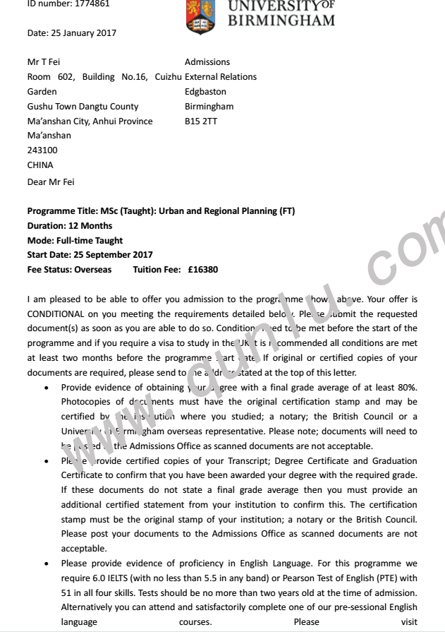 • 录取结果: University of Birmingham;Cardiff University;University of Liverpool;University of Manchester...