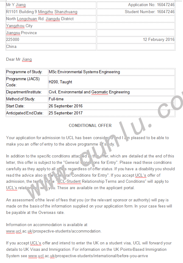 • 恭喜姜同学获得 UCL和University of Manchester的offer
