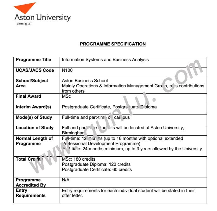 • 申请国家即专业: 英国;信息系统与商业分析学