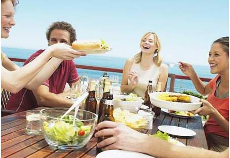 英国人喜欢在吃饭的时候聊天。但要同时说话和吃东西是很难的。而在吃东西的时候张大嘴,哪怕是说话,是不礼貌的行为。诀窍是:吃东西和说话交替进行;只往嘴里放少量食物。如果你必须张大嘴,用一只手遮住它。