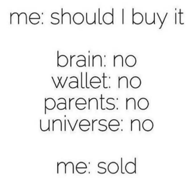 4、当你想要省钱的时候,总会听到一个声音说“对自己好点”。