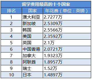 二、留学费用排名:费用最高的国家