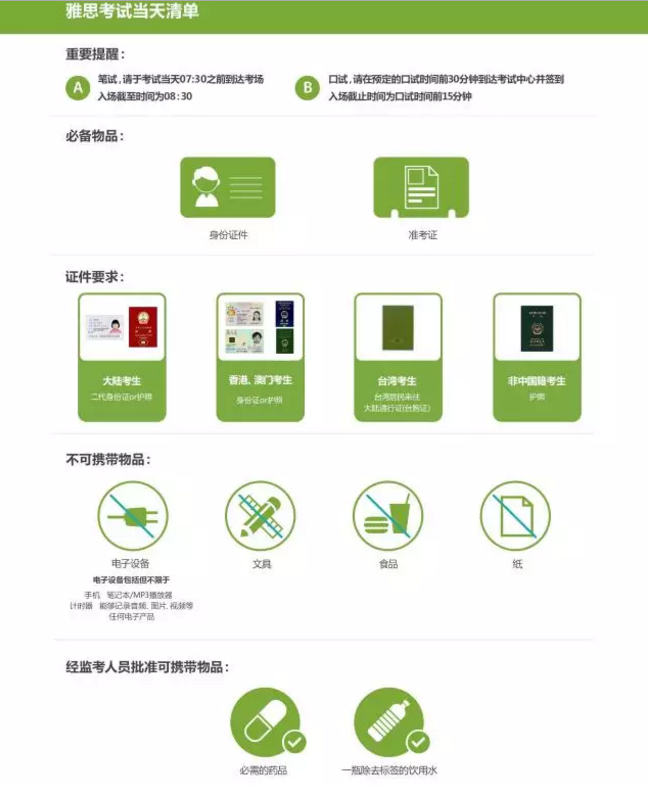 三、出国留学雅思考试流程之物品清单