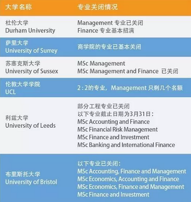 看看这张2016年秋季入学专业的关闭列表你就知道英国留学专业最热门的是哪一个了,大部分都是会计和金融相关的专业,火爆程度可见一斑。