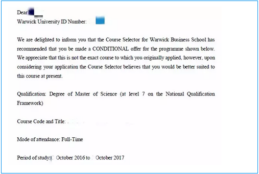 就在上个月,李同学递交了英国华威大学(University of Warwick)的金融专业申请。短短两周,他就收到了学校发来的Offer。