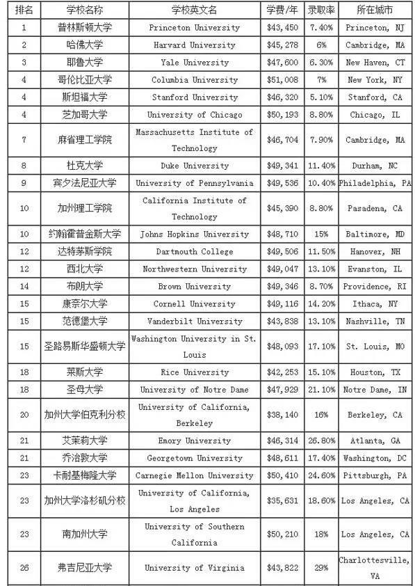 普林斯顿再次夺得榜首,哈佛大学依然排在第二位,耶鲁大学保持在了第三位。