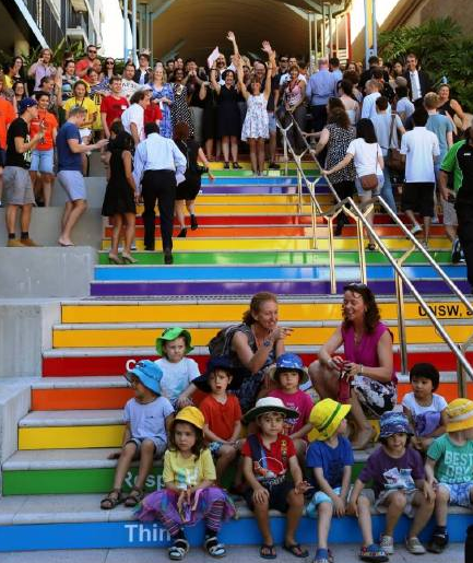 UNSW的彩虹Basser Steps正式启动,五彩缤纷,其乐融融,超级有爱啊有木有!