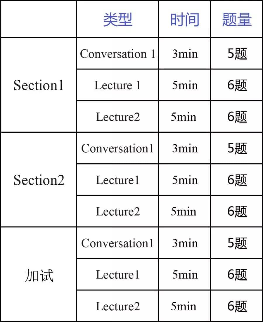 所谓加试,就是考生在听力考试过程中,完成两个Section 之后,再增加一个 Section(一个Conversation 和两个Lecture)的听音做题。