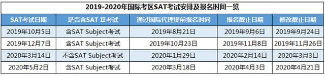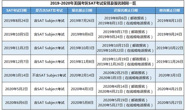 计划申请美国本科留学的同学们注意啦!2019-2020年SAT考试报名时间安排出来啦!小编为大家整理了2019-2020年SAT考试的具体安排,快来看看美国考区和亚洲考区都有哪些考试场次,报名截止时间又是哪天?