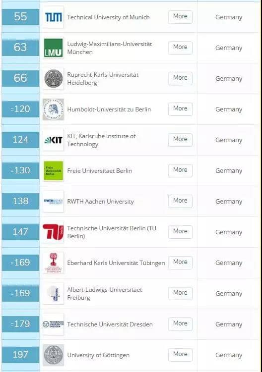 进入2020年“QS世界大学排名”前200强的德国大学有: