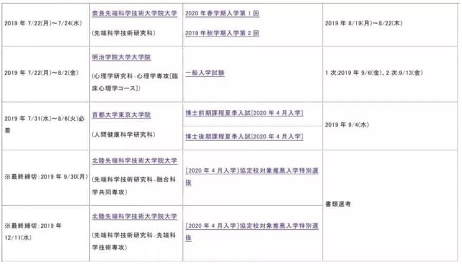 7月过半,目前节点看还可以出愿的大学院学校和专业,上面都已经列出来了,希望能给各位在日本的为出愿时间为难的孩子们起到一定的帮助。