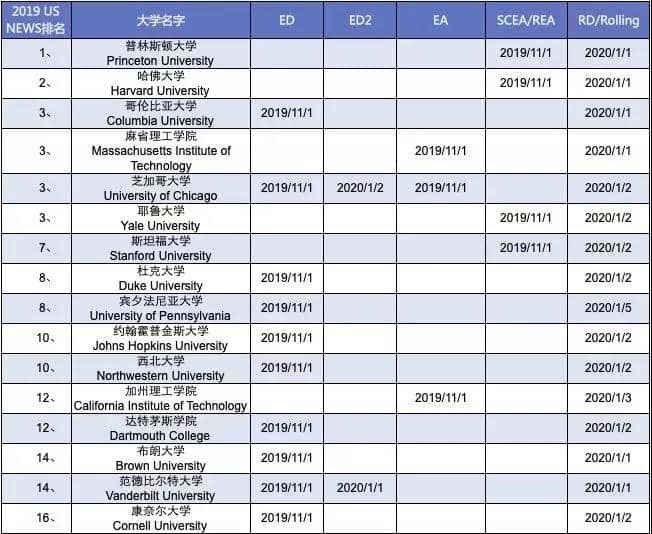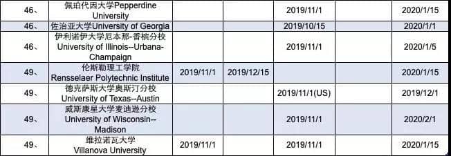 2019-2020美国TOP50综合性大学申请截止日期