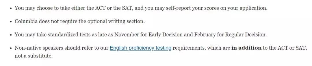 哥大官网截图:ED申请最晚的SAT考试时间是11月;RD申请最晚2月。