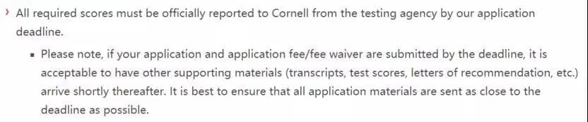 A:常说的截止时间多指申请表的提交时间,绝大多数学校申请表和申请费的提交时间是统一的,当然也有如UIUC这样可以在RD申请提交后10天内再交申请费的情况。实际操作过程中申请者一般都是一起提交。即使学校没有明确要求,还是建议申请者尽量保证在申请表的截止时间之前向学校提交你的完整申请,后面有材料更新,可以补送。
