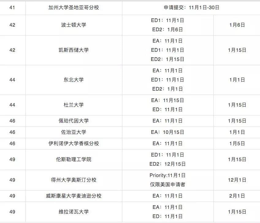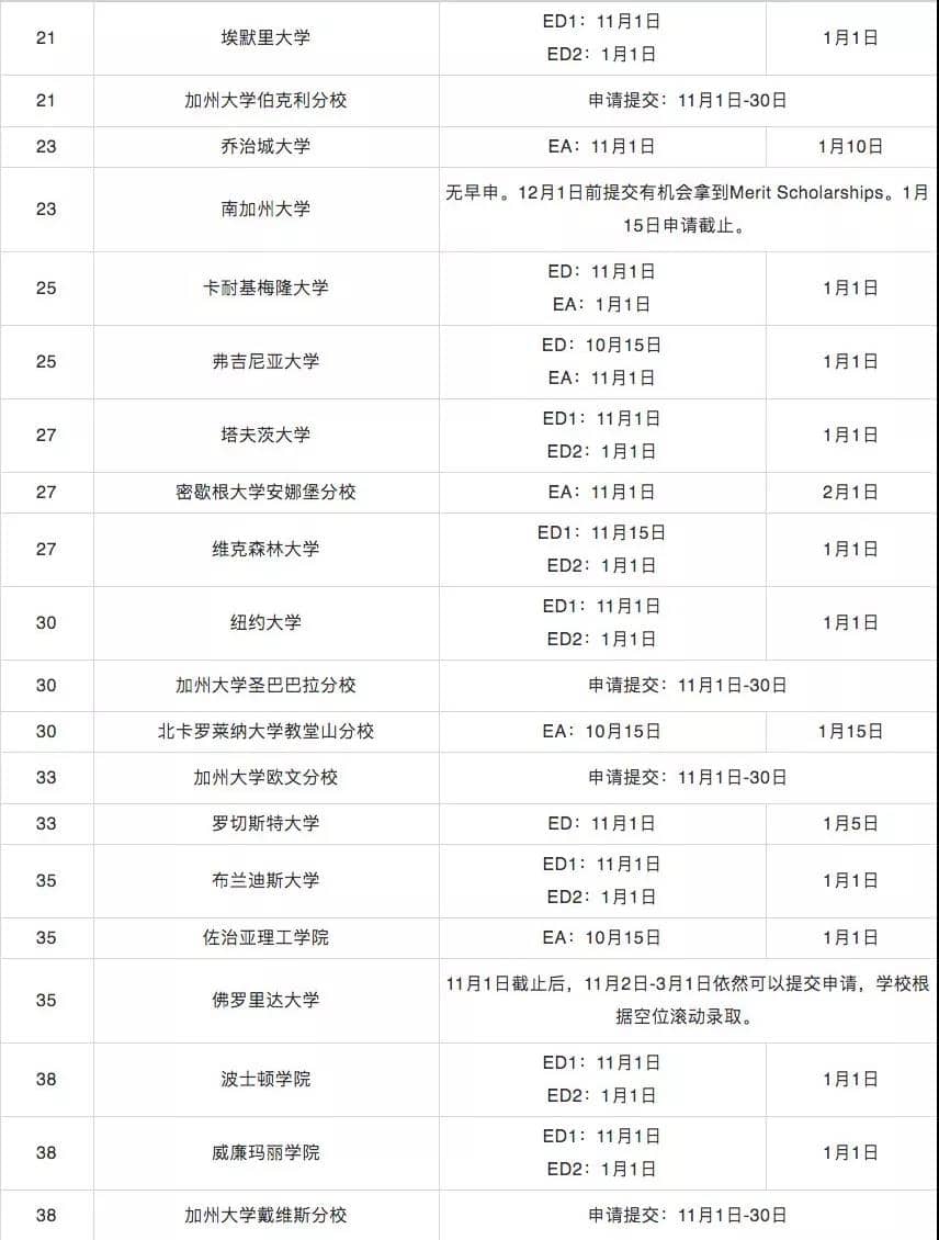 联合学院新增了EA,11月1日截止。此外, ED I 11月15日截止,12月中旬出结果;ED II 和常规申请一样,明年 1月 15日截止,三月底出结果。