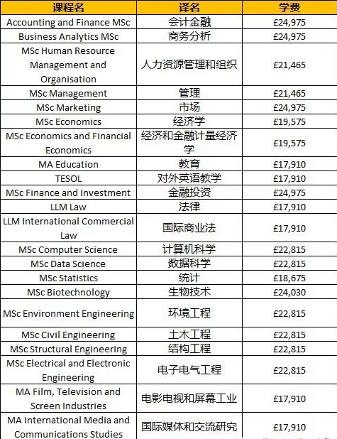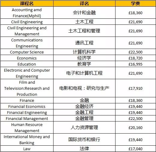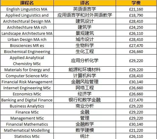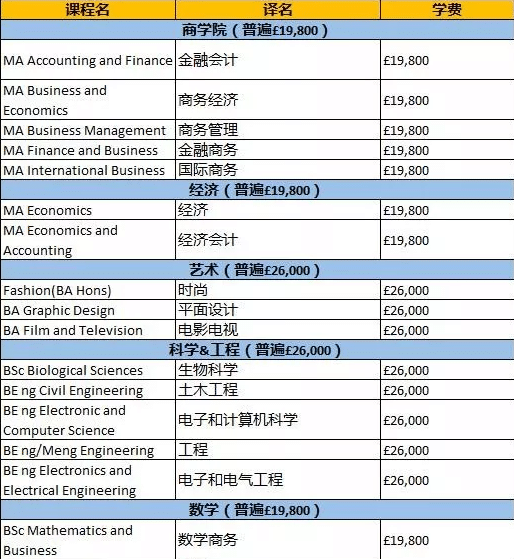 以下列出的是部分类别,并非全部,只作参考,详细学科费用请参考各校官网