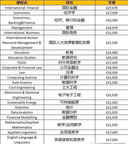 MBA是唯一一个国际学生和本地学生学费差不多的专业,平均学费都在£18,000 - £20,000。
